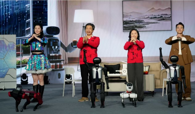 “去年还是走路颤颤巍巍的机器老奶奶,今年超进化成武林高手了。”今年的春晚机器人含量超级高,而且表现也是相当好,机器人进入了不少语言类节目当中,“人机共生”成为语言类节目的新标配。