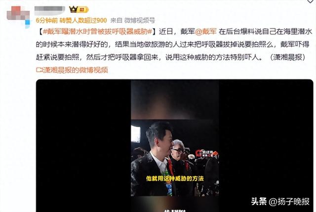今日(3月19日),有网友在社交平台发文称“戴军曝潜水时曾被拔呼吸器威胁”。