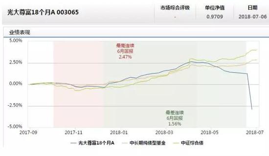 此外,老揭还发现,光大保德信旗下另一只中长期纯债——光大保德信尊富18个月定开债,也在相似的时间段发生了净值暴跌,同样疑似踩雷。根据该基金7月6日公布的净值来看,C类份额最新涨幅为-4.11%,A类份额最新涨幅为-4.10%。