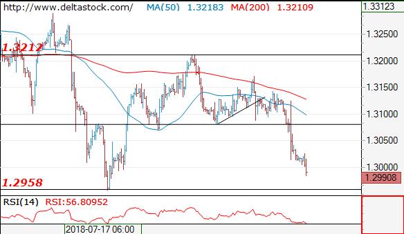 日内支撑:1.2960、1.2840;本周支撑:1.2960、1.2770