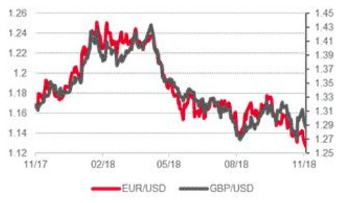 (欧元及英镑走势一致性,来源:SocGen、FX168财经网)