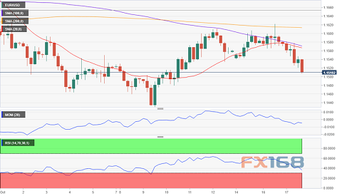 同样根据4小时图,动能指标维持看跌斜度,远低于中线,RSI加速下跌,目前位于34,支持汇价跌向近期底部1.1430。