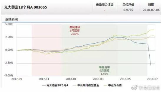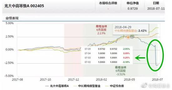 这事儿最近就发生在了光大保德信旗下的债券基金,光大中高等级债券A/C,在7月5日的净值跌幅达到2.95%,这对于一只风格稳健的中长期纯债来说,是极为罕见的现象。