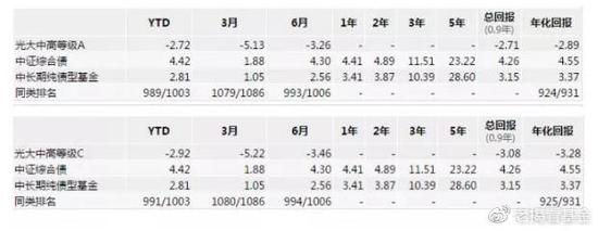 光大中高等级债券A/C成立于2017年8月4日,成立以来的总回报分别为-2.71%、-3.08%。从这2只基金今年以来、近6个月、近3个月的区间业绩来看,也都在同类基金中处于垫底的位置。这样的投资业绩估计很难让投资人满意。