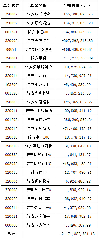 2016年上半年诺安基金公司旗下亏损基金一览