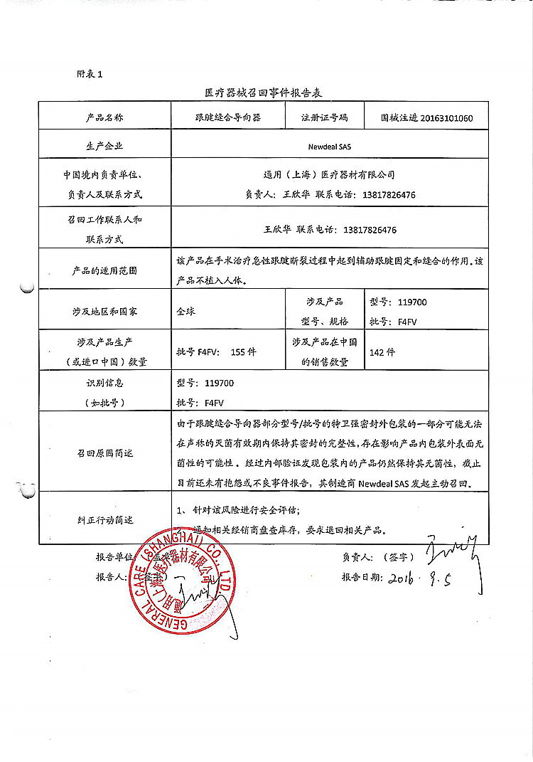 通用 (上海) 医疗器材有限公司报告:企业发现,涉及产品的无菌外包装可能无法保证在声称的灭菌有效期内保持其密封的完整性,影响产品内包装外表面保持无菌。公司决定召回相关产品,回收相关产品。本次召回级别III级,涉及产品的型号、规格及批次等详细信息见《医疗器械召回事件报告表》。