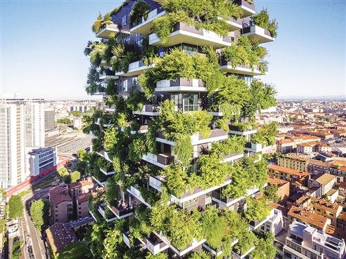 米兰的“bosco vertical”是世界上第一座“垂直森林”,也是首座在百米高楼上种植高达9米乔木的建筑。2008年,博埃里建筑设计事务所接下这一项目,一直到2014年10月才正式竣工。该项目包含两座塔楼,一座高112米,一座高76米,为纯住宅项目。两幢大楼可容纳480棵大型树木,230棵小型树木,11000株地被植物,以及5000株灌木。这些生长于外立面的植物能够阻挡太阳辐射、风沙、噪音,还能产生氧气和增加室内湿度。
