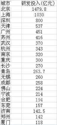 京沪研发投入超过1000亿分城市来看,北京与上海这两大强一线城市的研发投入都超过了1000亿元。