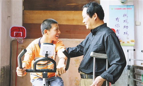 江西乐安县公溪镇的残障夫妇刘柱和阮建华创办了名为“阳光日托”的残疾人托养中心,义务为精神以及身体残疾的儿童提供托养、教育和康复服务。图为刘柱指导一名男孩进行训练。 新华社记者 潘思危摄“很感谢大家,是你们帮助我再次燃烧起对生命的渴望和热情……”这是朱春燕在中国康复研究中心30周年系列活动中的发言。在2008年“5·12”汶川特大地震中,她受到严重创伤,经过中国康复研究中心的治疗,她重获新生。