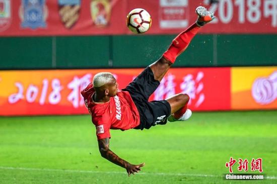 资料图:广州恒大球员塔利斯卡在比赛中倒钩射门。中新社记者 陈骥旻 摄