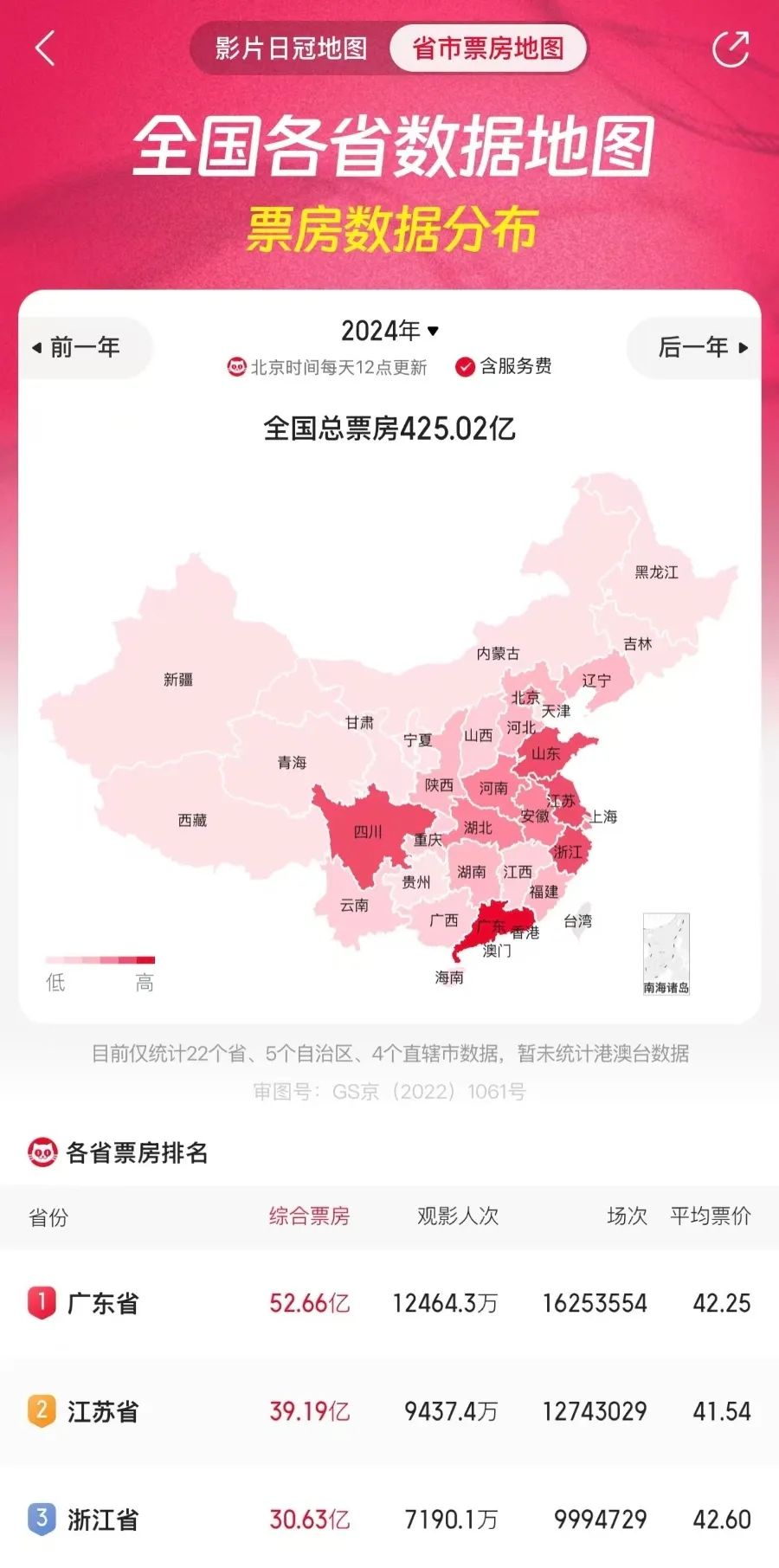 其中,广东省2024年总票房为52.66亿元,连续23年蝉联全国“第一票仓”,总观影人次及放映场次亦为全国第一。