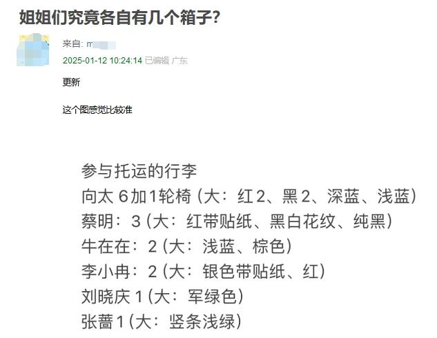 网民根据出发路透和播出内容猜测的箱子数量
