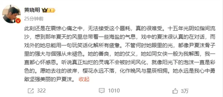 黄晓明发文悼念大S