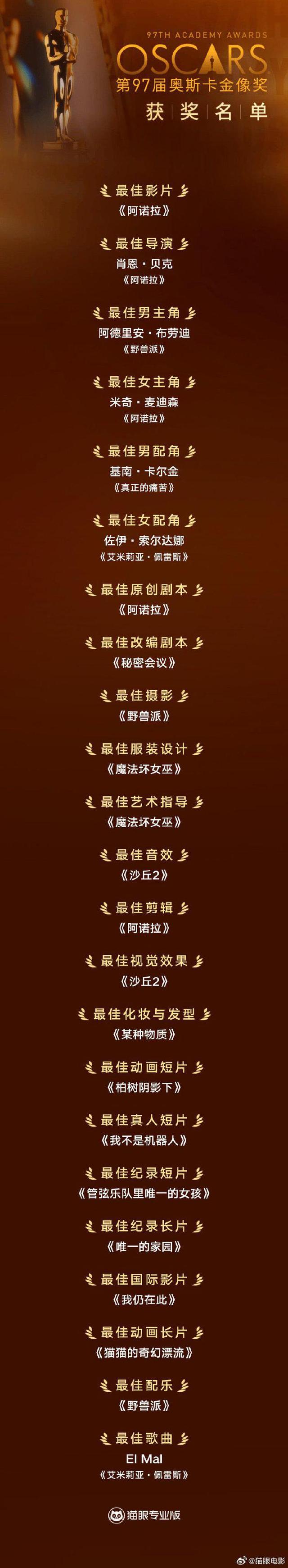 早在最有分量的四个大奖:最佳影片,最佳导演,最佳女主,最佳男主出炉前,其他偏技术类奖项陆续尘埃落定时,就隐约让人产生了一种不详的预感。当一场颁奖典礼过于强调雨露均沾,井然有序的堪比分蛋糕,这通常意味着要么佳片荟萃、神仙打架,要么水货云集,评奖组委会只能闭着眼睛矬子里面拔将军。
