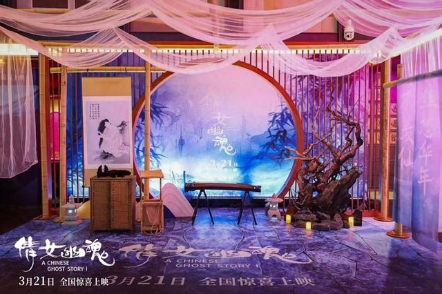 活动现场,影院设置惊喜打卡点,如兰若寺一般飘渺幻境,幽幽的雾气、飘扬的白纱、幽怨的琴声,带领所有影迷来到了故事中的世界。