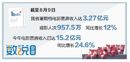 据悉,截至8月9日,我省今年电影票房收入已达15.2亿元,同比增长24.6%。(记者 张理想)