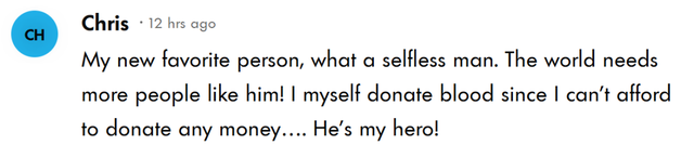 路转粉了,多么无私的人啊!这世界太需要更多像他这样的人了!我本人会去献血,因为我没能力捐钱……他就是我的英雄!