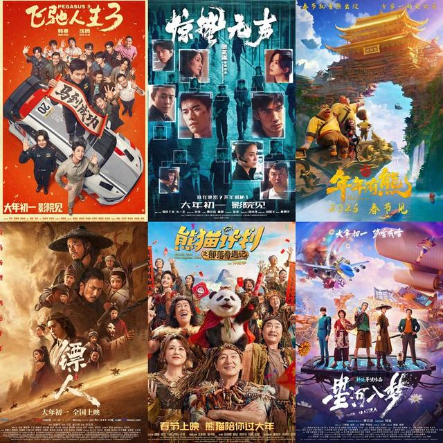 2026年春节共有9天长假,6部新片同日上映,《飞驰人生3》《惊蛰无声》《熊出没·年年有熊》《镖人:风起大漠》《熊猫计划之部落奇遇记》《星河入梦》类型多元、阵容强大,哪一部是你的“开年第一选”?