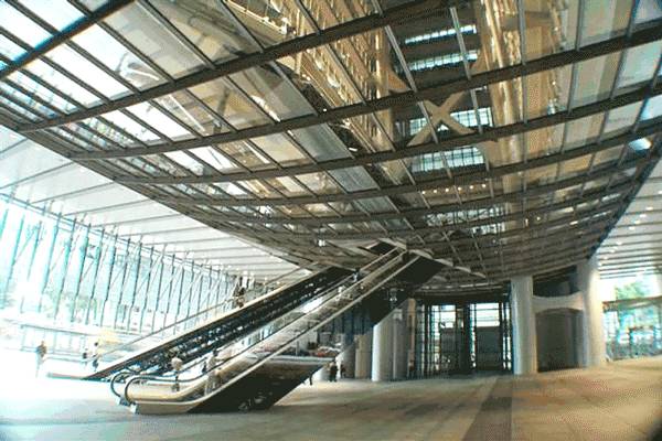由上图可见,汇丰银行的一楼大堂,除了两个手扶梯,其他什么都没有。并且前后两个入口,连大门都没做。这个在商业大厦中,乃至全世界都及其罕见的设计。