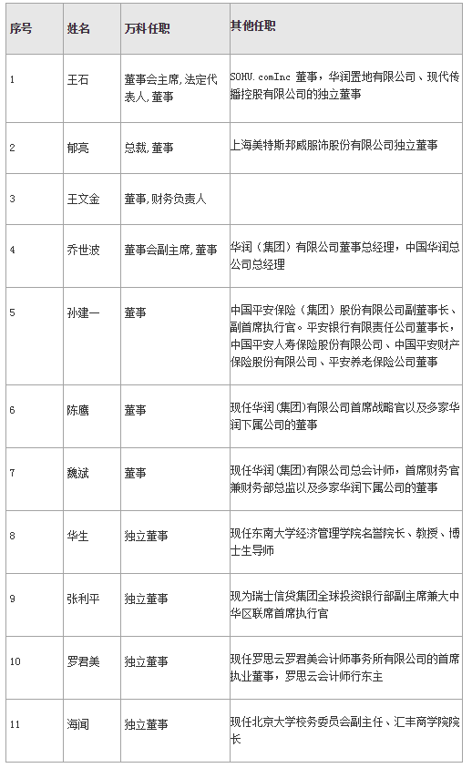 二、万科董事会构成