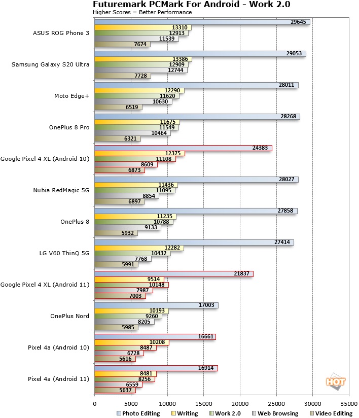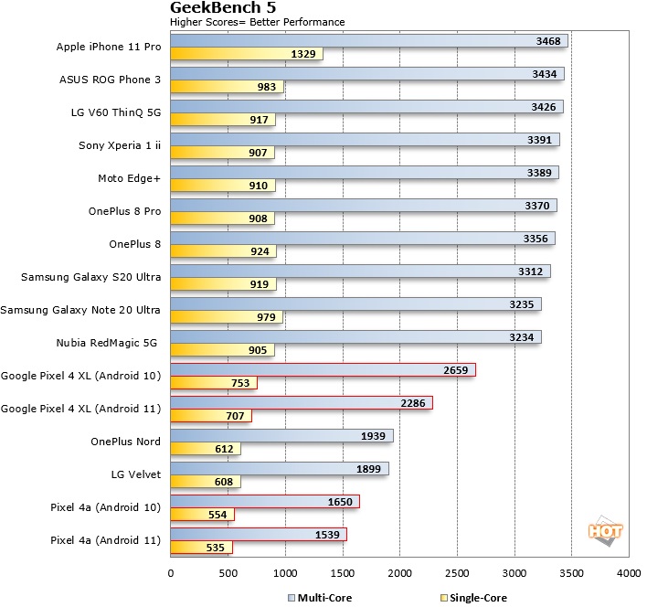 Android 11 与 Android 10 相比,性能似乎出现了明显的倒退,外媒 Hothardware 通过基准测试得出了这一结论。