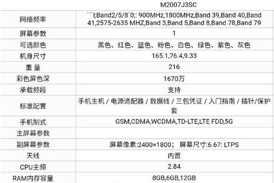 根据最新发布的消息显示,全新的 Redmi K30S 将会采用一块 6.67 英寸 LTPS 屏幕,分辨率为 2400×1800(实际应为2400×1080),搭载 CPU 主频为 2.84GHz 的处理器,不出意外的话就是高通骁龙 865 处理器。提供 6GB、8GB、12GB 三种内存规格,将后置 6400 万像素 + 2000 万像素 + 800 万像素的三摄相机模组。此外,该机还将提供黑色、红色、蓝色、粉色、白色、绿色、紫色、灰色共 8 种高颜值配色可供选择。