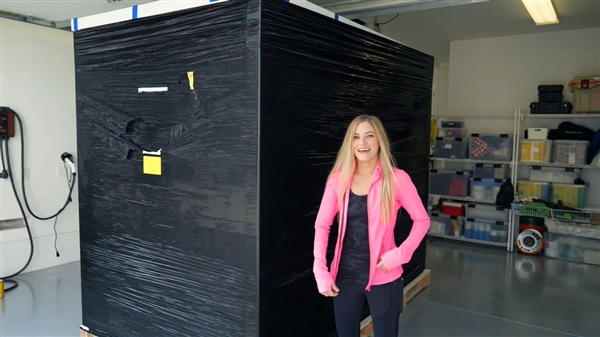 可能是为了故弄玄虚,冰箱外框木架和纸箱的体积非常大,以致于主播关不上车库门。