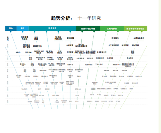 值得注意的是,这是德勤第十一年发布技术趋势年度报告。今年的技术趋势报告继续在开篇回顾了 11 年来的技术趋势发展,展示了技术趋势随时间推移的演进全过程以及最新宏观科技力量作为业务转型基础带来的共生效益和不久的未来的新兴科技力量。与此同时,《报告》还指出,未来三大颠覆性技术(即环境体验、指数智能和量子技术)正蓄势待发,我们将在本世纪20年代末开始感受到它们的影响。