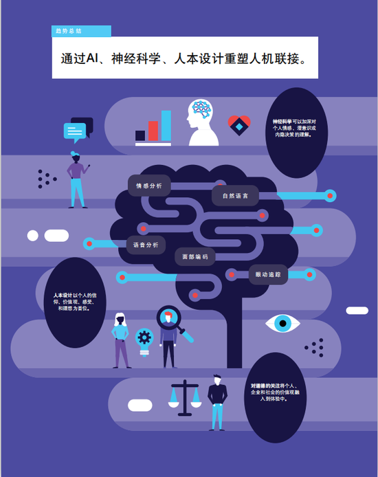 在不久的未来,我们将会看到人们对人性化的技术需求曰益增长。在数字化革命进程中,我们目前进入到一个阶段,就是每个人之间未必有 接,但每个人一定都与技术有联结。我们正在消除流程和交互,直接与机器互动。因此,我们渴望我们正在迅速失去的东西:有意义的联结。为此,我们期望技术能够用更 加人性化,更人道化的方式跟我们互动。设计能够满足这一期望的技术需要对人的行为有更深刻的洞察,并不断创新,以提高我们预测和响应人们需求的能力。不久的将来,人感体验很有可能会带来长久的、可持续的竞争优势。