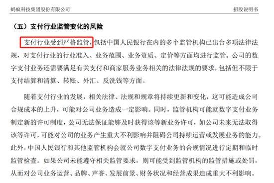 “支付行业在中国受到严格的监管。”在招股书的风险因素一栏中,蚂蚁强调。站在安全的层面,不难理解。