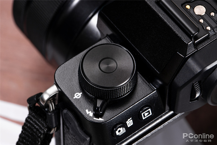 留意相机左侧的按键,在拍摄状态下,原来的删除键同样换成了模式选择按钮,左上角多功能转盘的默认设置是切换胶片模拟模式,通过转动转盘即可手动切换,用户也可以自定义更改为别的操作设置。