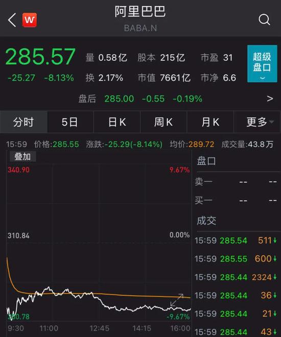11月3日美股收盘,阿里巴巴股价逆势大跌8.13%,报285.57美元,市值跌超600亿美元(约合人民币4000亿元)。同日,美股三大指数大幅收涨,道指收涨2.06%,纳指收涨1.85%,标普500指数收涨1.78%。