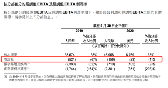 拆分业务来看,2020年三季度业务表现亮眼的在于菜鸟和云计算。具体数据如下: