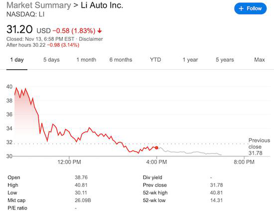 理想汽车周五预期,四季度交付量可增至1.1-1.2万辆。该公司周五盘前发布上市后首份财报,截至9月底止的季度,总营收为25.1亿元人民币,较二季度增长28.9%,汽车销售额为24.6亿元人民币,环比增长28.4%,交付量达8660台,环比增长三成一,也下创新高。期内,该公司净亏损1.1亿元人民币,环比上升42.2%,主要因为运营开支、研发费用和销售成本均较上季大幅增加,运营开支和研发费用增幅分别为55.2%和66.1%。不过,非美国通用会计准则下则实现扭亏,净利润1600万元人民币,而今年二季度净亏损达1.6亿元人民币。公司现金流情况良好,自由现金流为7.5亿元人民币,环比增长149.3%。利好财报刺激该股盘初飙升两成八,股价一度突破40美元,并带动造车新势力全速前进,蔚来和小鹏汽车周五早盘最多涨11%和14%。