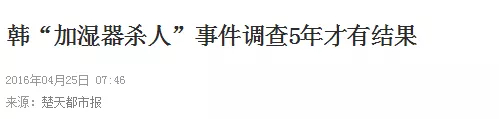“韩国加湿器杀人事件”的新闻里,并不是说加湿器本身存在问题。调查发现受害者的死亡原因是使用加湿器时添加了一种含有PHMG有毒物质的杀菌剂。加湿器把含有杀菌剂的水雾化之后喷到室内空气中,然后通过呼吸吸入肺部,造成肺部损伤,进而导致死亡。