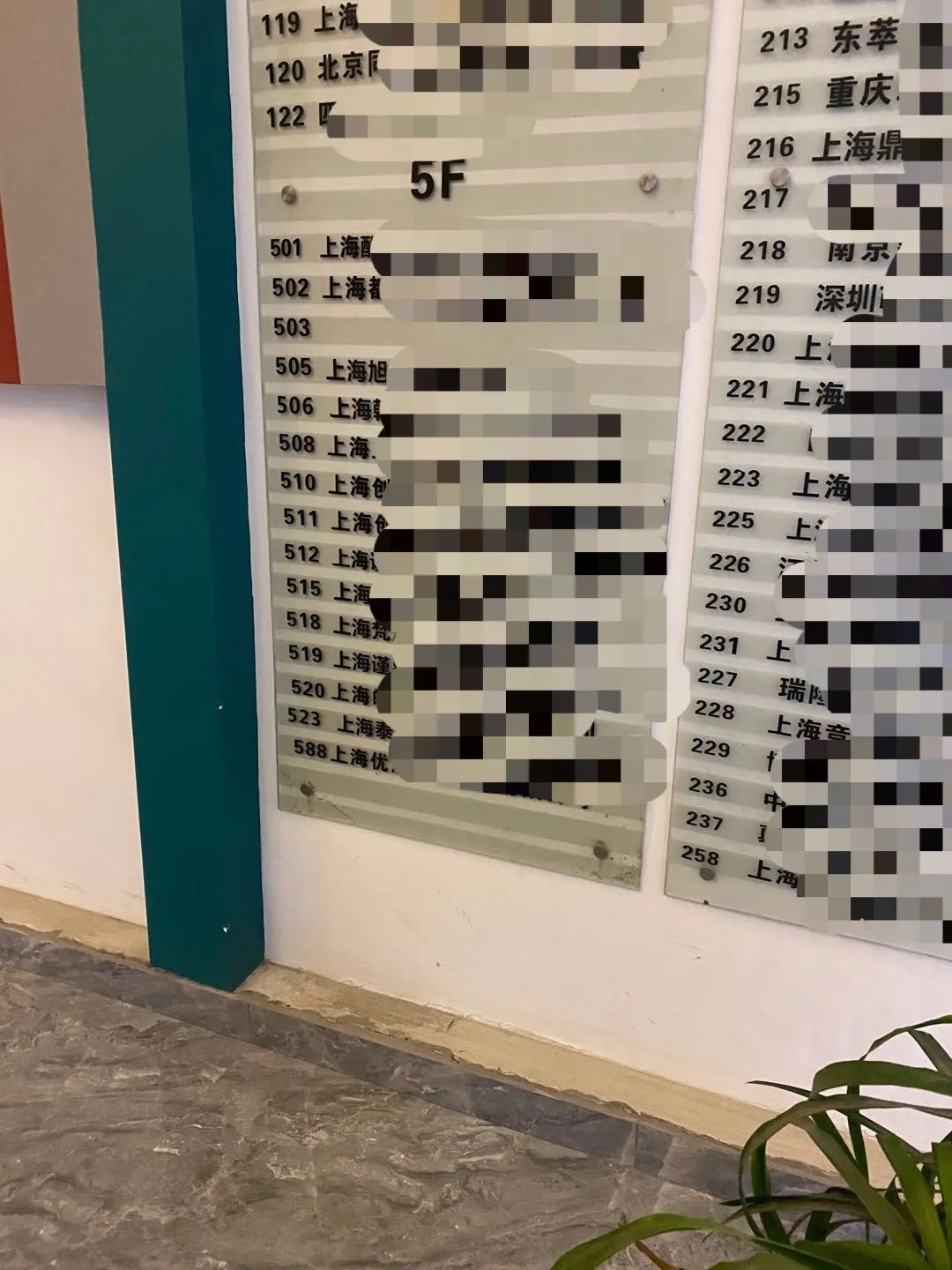像是这种原本贴着蛋壳公司名字在几楼的标志,已经被揭掉了(无关公司已打码)。我不得不“夸”他们一句“细致”。