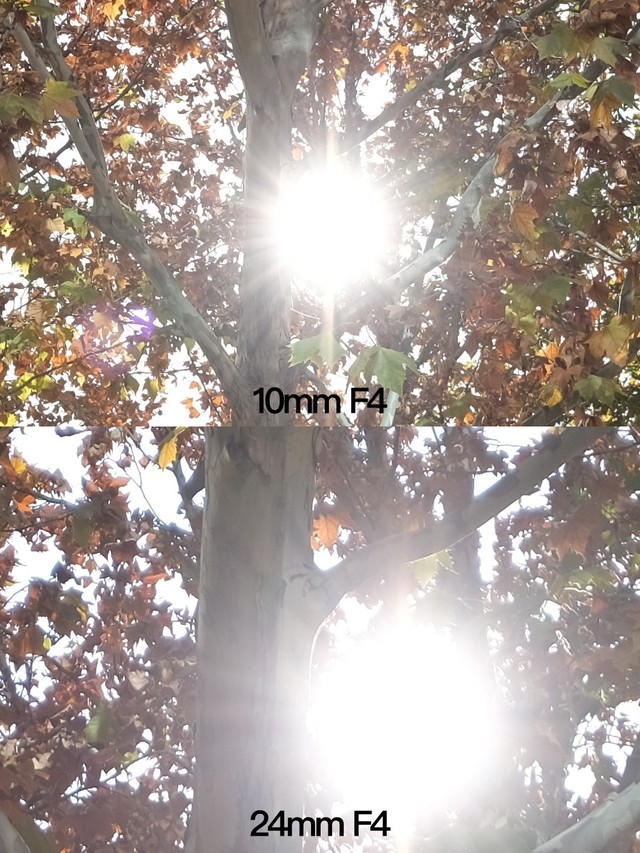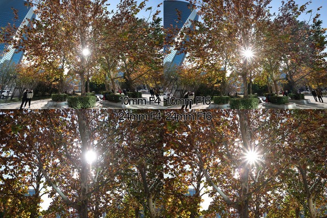 在24mm端,镜头中心锐度依然优秀,但是边缘锐度相比于10mm略有下降。在24mm端,光圈全开时中心画质稍有下降,但是从F5.6开始,高画质可以一直保持到F16。