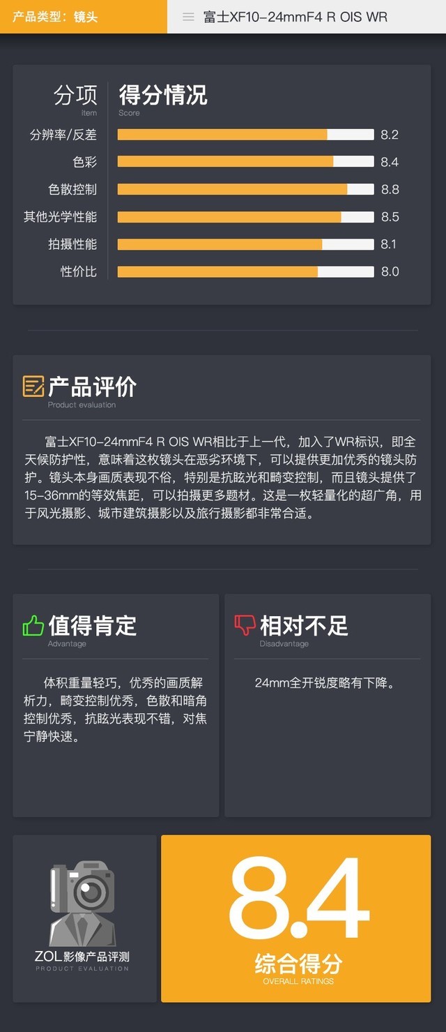对于这枚镜头,笔者给出8.4分的得分。作为一枚便携性颇为出色的超广角,这枚镜头适合富士用户用于风光摄影、建筑摄影,以及大部分广角摄影题材。