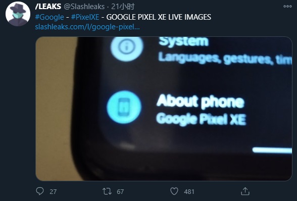 爆料者 @Slashleaks 在推特上发布了一张真机实拍照,设备名称显示为谷歌 Pixel XE 。第二张图片显示该设备将搭载八核芯片组,并支持双 SIM 卡,第三张照片包含该设备支持 NFC 连接的证据。如果爆料属实,谷歌 Pixel XE 将采用顶部中置打孔屏的设计。