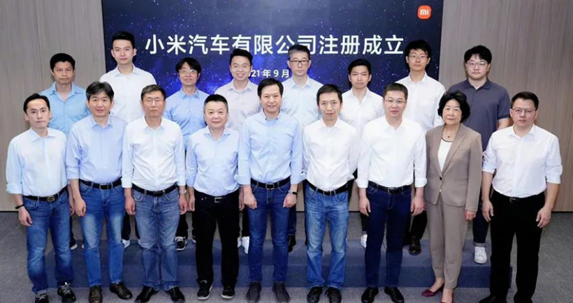 ▲ 国家市场监督管理总局在 8 月 26 日公布了小米汽车有限公司名称但最重要的是,在微博下方,雷军还配上了一张 17 个人的大合影,这些人也基本上将会是小米汽车的核心主创团队。2010 年 4 月 6 日,雷军也是在银谷大厦和十几位初创人员一起喝了一碗小米粥,此后才有了小米的今天。
