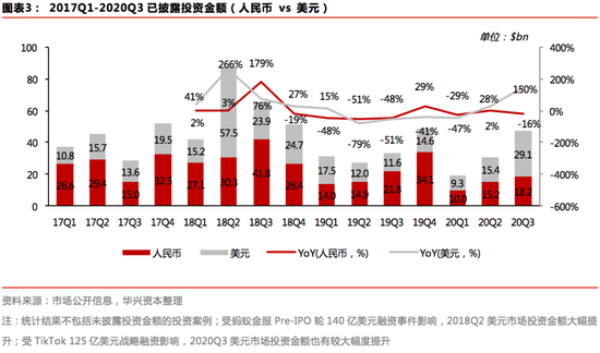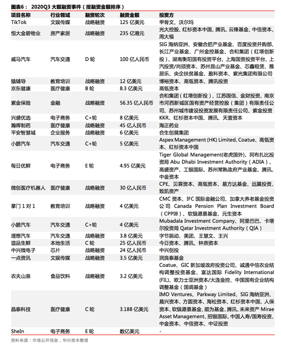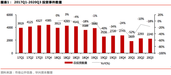 数据源补充说明:1.本文投资部分数据源为IT桔子和企名片,由华兴资本汇总整理得到,其中,行业分布数据源为企名片;2.募资部分数据源为私募通和投资界,数据摘录时间为2020.10.6;
