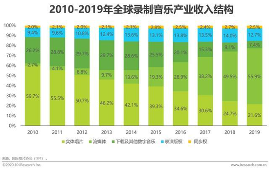 但音乐同步权收入相较过去几年并没有发生大的变化,依旧在2.5%左右。这背后存在的症结是,数字信息时代带来的音乐版权问题、数据问题尚未解决。尽管近一两年,用户的付费意识及音乐版权意识都在逐步上升,但音乐行业中,仍然频发歌曲侵权纠纷。