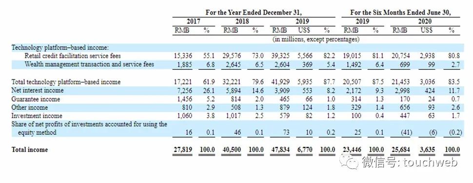 陆金所大部分收入来源基于服务手续费。2020年上半年,这部分收入占比达83.5%,2017年同期为61.9%。