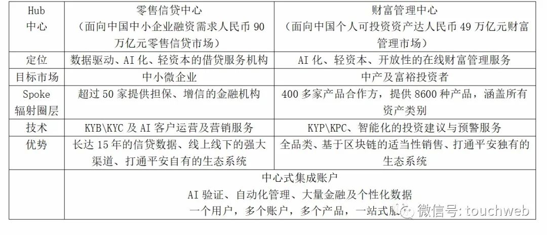 1、轻资本、Hub and Spoke(中心辐射型)商业模式。陆金所有可扩展的、轻资本的商业模式,专注于规模大、未被充分服务但极具吸引力的细分市场。