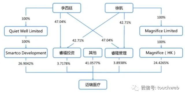 徐航通过Magnifice持股24.4265%,通过睿福投资间接持股1.59%,通过睿隆管理间接持股1.663%,徐航一共直接和间接持股为27.68%。