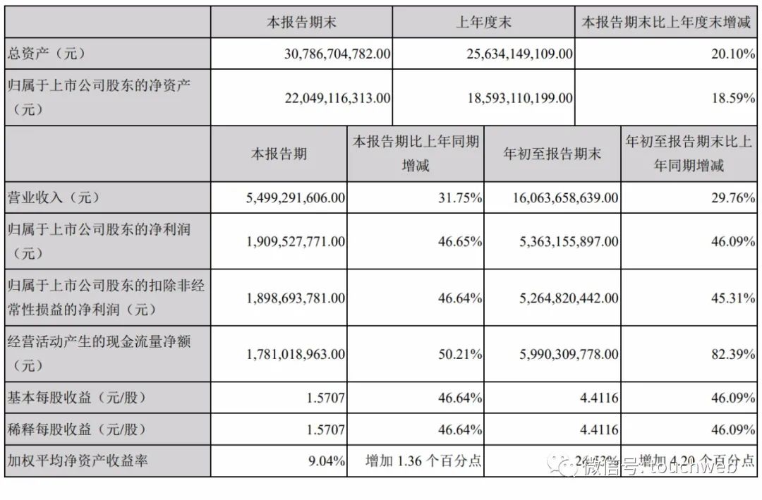 迈瑞医疗2020年前9个月营收为160.64亿元,较上年同期增长29.76%;归属于上市公司股东的净利润为53.63亿元,较上年同期增长46.09%。