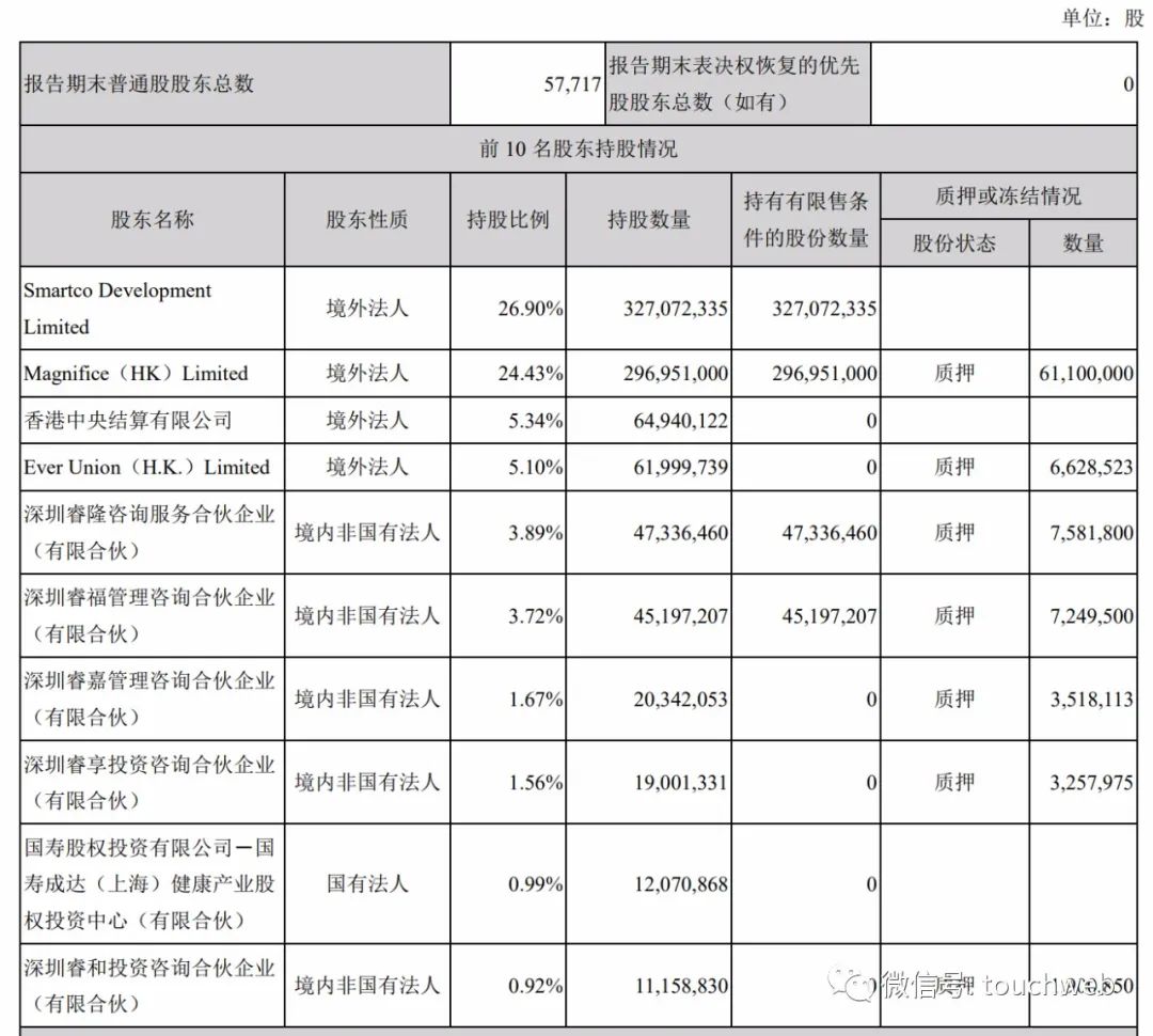 截至2020年9月30日,Smartco Development Limited持股为26.90%;Magnifice(HK)Limited持股为24.43%;香港中央结算有限公司持股为5.34%;Ever Union(H.K.)Limited持股为5.1%;