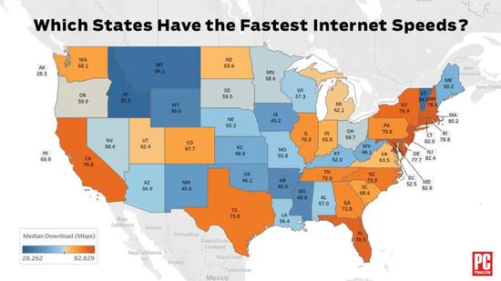 虽然美国是科技强国,但其网速却让人不敢恭维: