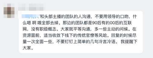 有人选择愤怒,有人则不得不卑微地示弱。一则老板与直播团队的对话出现在商家群里,要求属下员工与主播沟通时注意语言和态度。