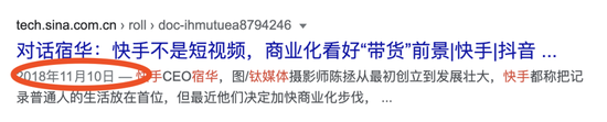 另外还有一个巧合是,我在2017年7月在公众号发表了一篇《快手不是短视频》的文章,宿华在2018年底接受钛媒体采访也是用的同样表达。